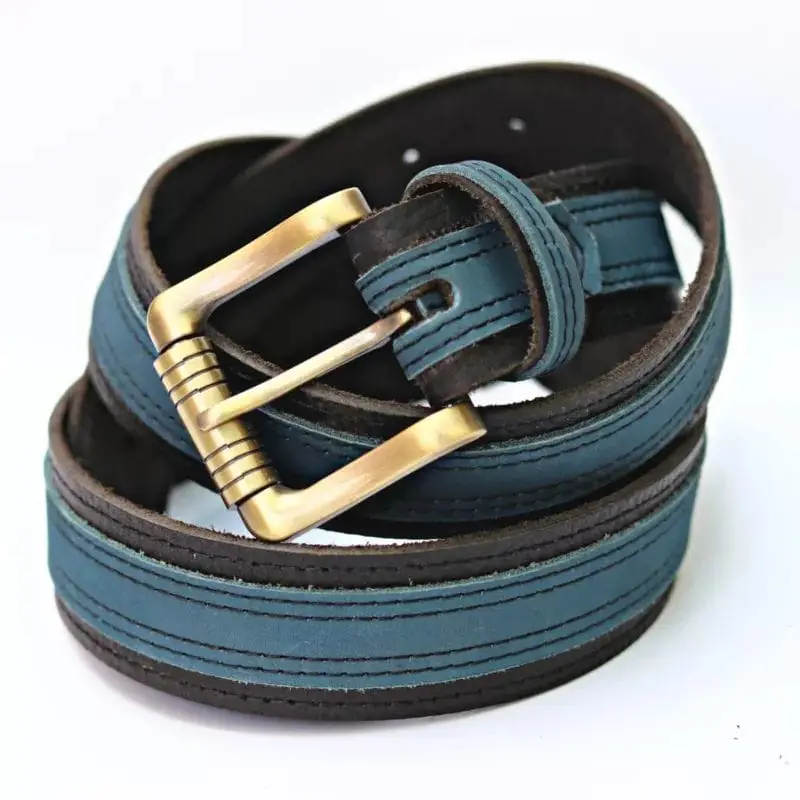 The streamlined single-layer build ensures a lightweight fit without sacrificing resilience, making it a reliable companion for long hours of wear. A classic metal buckle enhances its clean silhouette, adding a touch of understated sophistication. Every edge is carefully finished for a sleek profile that elevates any ensemble with subtle confidence. Premium Men leather belt – blue and black